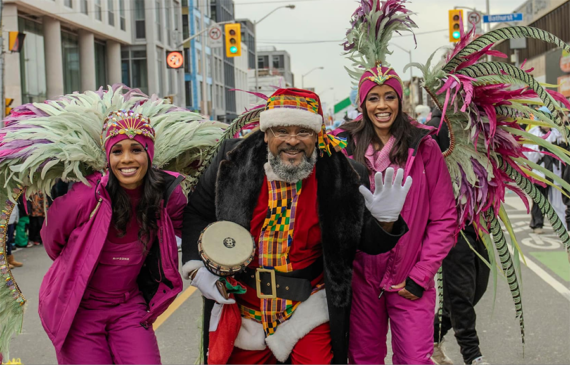 Dewitt, or should we say Kente Claus, has been seen around the GTA for many years. He was at Sunday’s Santa Claus Parade, greeting kids at the corner of Bathurst and Bloor Street for the 7th year in a row. Since his surprise parade appearance, Kente has been kept as busy as Santa’s elves.